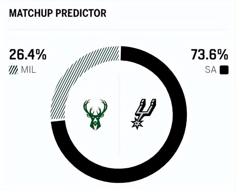 赛前,美媒ESPN对本场比赛进行了胜率预测,雄鹿队胜率仅有26.4%,依旧不被看好,马刺队胜率则高达73.6% ,显然美媒都看好马刺本场能够打破“低迷魔咒” 。